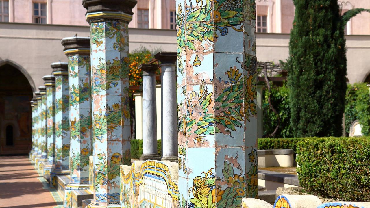 Délután a Santa Chiara gyönyörű kézzel festett majolikás kerengőjét nézzük meg.